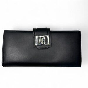 Salvatore Ferragamo - Long Black Leather Wallet Silver Clasp w BOX