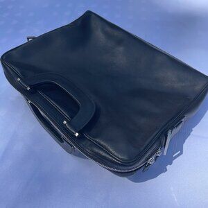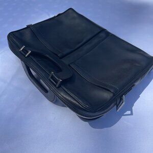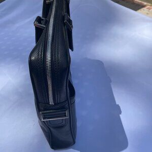 This sleek professional Salvatore Ferragamo black briefcase features flawless zipper movement, soft leather material, silver hardware, and two exterior pockets for quick access for essentials. The briefcase comes with impressive accessories including soft leather portfolio binders and a shoulder strap. The briefcase is in new condition as it was only gently carried once and has been in its' Salvatore Ferragamo protective storage bag since purchase. There are no blemishes on the collection.