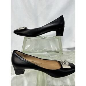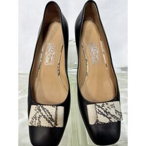 Salvatore Ferragamo Low Heel Pumps In Vara Leather And Snakeskin Bow US 9.5 M