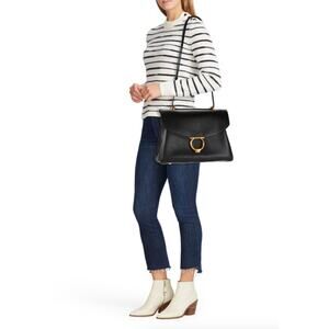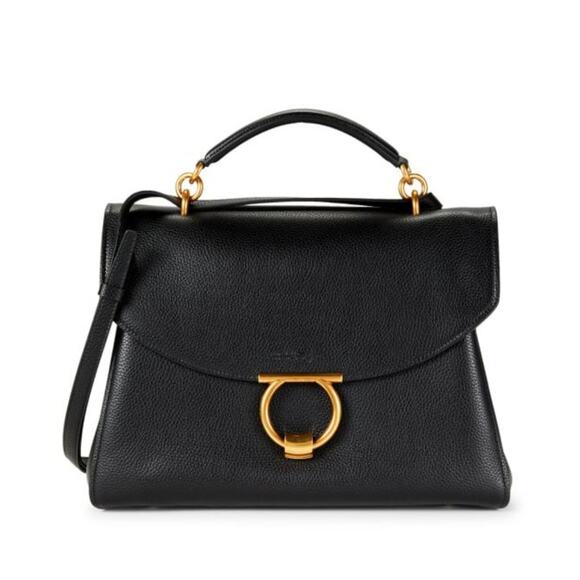 Salvatore Ferragamo Margot Leather Shoulder Bag Black Pebbled Leather.
