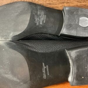 Salvatore Ferragamo Men Black Pebbled Leather Moc Split Toe Derby Oxford Size 13. Some wear and creasing on toe, see images. Pre-owned.