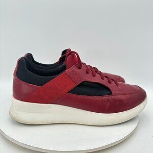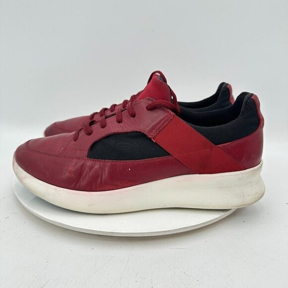 Salvatore Ferragamo Men Size 9EE Red Burgundy Black Leather Low Top Lace Up Shoe