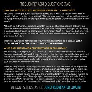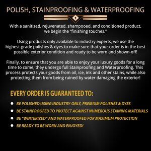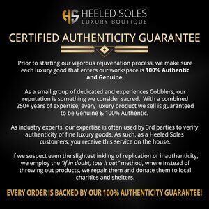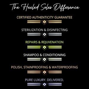 *Please note, some materials are not waterproofed and/or polished, as these procedures may ruin the material. Heeled Soles always goes above and beyond to ensure our products are above industry standards and does everything to keep the integrity of the product at its highest.