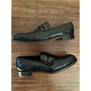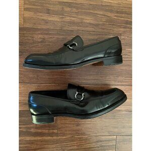 Salvatore Ferragamo Men's Black Leather Horse Bit Buckle Loafers - Size 10.5