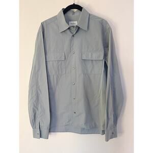 Size S - Salvatore Ferragamo Men's Blue Cotton Utility Workwear Snap Front Shirt in excellent condition!