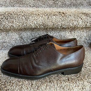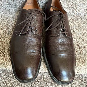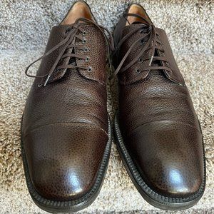 Salvatore Ferragamo Men's Brown Brown Pebbled Leather Oxford Shoes - Size 12D. In very good condition with signs of minimal use.