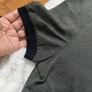 Sophisticated gray polo with classic black collar. Perfect for versatile styling.