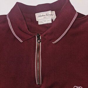 Salvatore Ferragamo Men's Maroon Short Sleeve Pique Polo