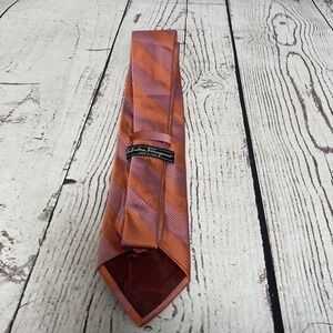 Salvatore Ferragamo Mens Silk Neck Tie Orange Pink Strip Designer