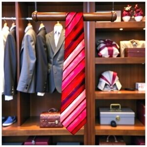 Salvatore Ferragamo Men’s Silk Necktie. Red, Purple, Pink.