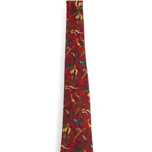 Description: Up for sale is a Salvatore Ferragamo men's designer silk tie. It is handmade in Italy from 100% silk. The dimensions are approximately 56" long x 3 5/8" wide. The tie has a multicolored colorful floral and bird motif in yellow, green, blue, white & gold on a red background. This tie is in excellent condition.
