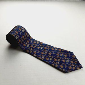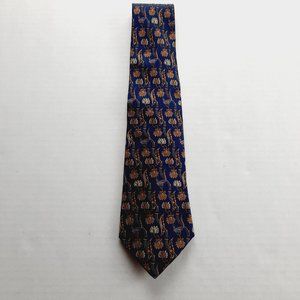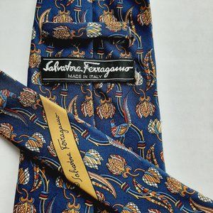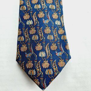 Salvatore Ferragamo Mens Tie Navy Blue Ornate Bird Print 100% Silk Classic