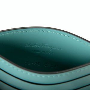 Salvatore Ferragamo Men's Turquoise Blue Logo Print 100% Leather Card Case