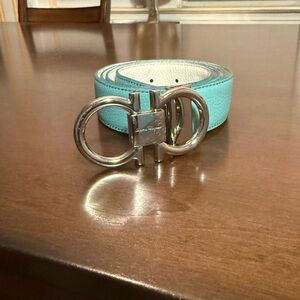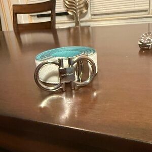 Sophisticated Salvatore Ferragamo belt with a sleek silver buckle. Perfect for adding elegance to any outfit.