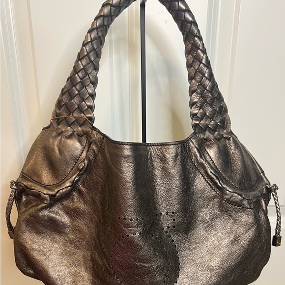 Salvatore Ferragamo Metallic Gancini Leather Hobo Hand Bag - EUC