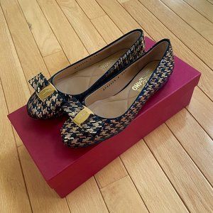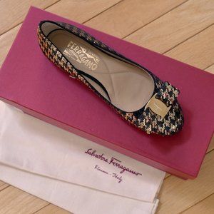 Salvatore Ferragamo VARINA COO 1cm Vera Bow Raso Nero Fabric Black & Gold Ballet Flats Size 5.5 C