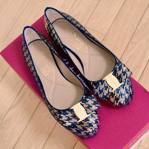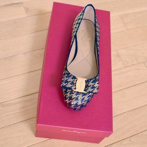 Salvatore Ferragamo NEW VARINA COO Vera Bow Raso Nero Black&Gold Flats Size 5.5