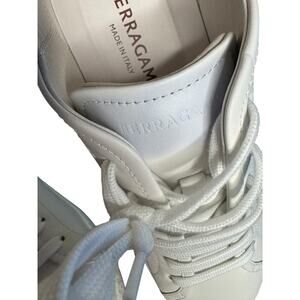 Salvatore Ferragamo NIB Brandy Leather Sneakers in White/Red Size 9.5