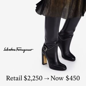 Salvatore Ferragamo Nadix Knee Black Boots Gancini Harness Strap Runway ๐ฎ๐น Size 6