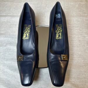 Salvatore Ferragamo Navy Blue Leather Heels Women’s Size 9.5 4A Narrow Italian