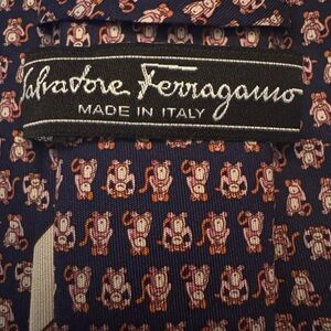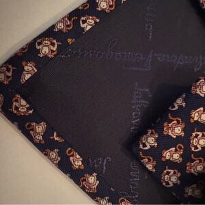 Salvatore Ferragamo Navy, Brown and Pink Subtle Little Monkeys 🐒 Patterned Tie