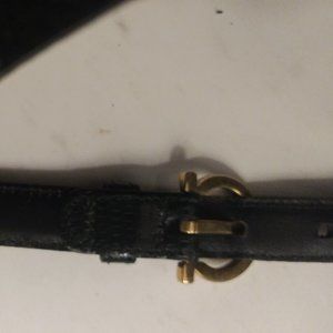 Salvatore Ferragamo 27-inch, one-inch wide Lux and Numbered Black Leather Excellent Condition. Throughout its history, we have known the company for its innovative designs and the use of materials. Such ingenuity goes back to Salvatore's time in California, when he studied anatomy to make shoes that were more comfortable. Notable innovations include the wedge heel, the shell-shaped sole, the ‘invisible’ sandal, metal heels and soles, the 18-carat gold sandal, the sock-shoe, sculpture heels, and the gloved arch shoe created for the Maharani of Cooch Behar in 1938. Marilyn Monroe made metal-reinforced stiletto heels famous. We also know the company for the ‘Gancini’ decoration, the ‘Vara’ patent ballet pump, the Salvatore bag, and the use of patchwork. It makes also eyewear and watches in partnership with Marchon and Timex Group. It started adding NFC tags to its products in 2014 to fight counterfeits. Salvatore worked with film stars and celebrities from his earliest days in Hollywood. Clients over the years included Audrey Hepburn, Sophia Loren, and Greta Garbo, as well as Andy Warhol, Seulgi, Grace Mugabe, and Diana, Princess of Wales, Namal Rajapaksha. The company made Margaret Thatcher's famous handbags[6] and for King Jigme Khesar Namgyal Wangchuck during the coronation on November 6, 2008, in Thimpu, Bhutan.