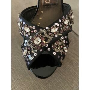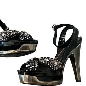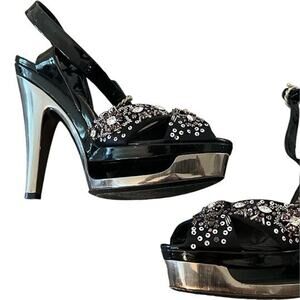 Salvatore Ferragamo PATENT LEATHER ANKLE WRAP MIRROR HEEL JEWEL PLATFORMS SZ 8