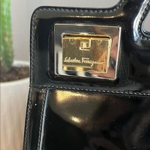 Salvatore Ferragamo Patent Leather Black Handbag with Gold and Silver Hardware