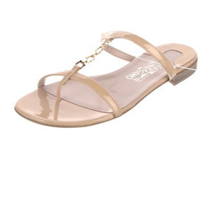 Salvatore Ferragamo Patent Leather Chain-Link Accents Slides