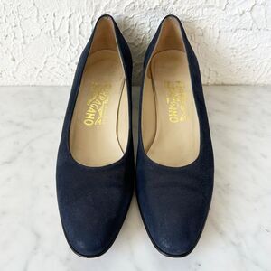 Salvatore Ferragamo Dublino pumps, Women's size 9-1/2 AAAA. Deep blue pebbled suede leather upper. Clean, padded leather insole, leather outsole. 2" flared heels. Shoes are in original box.