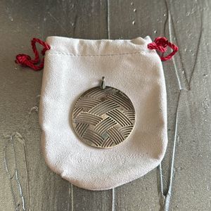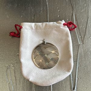 This is only the Salvatore Ferragamo Sterling Silver pendant. Sterling silver will naturally tarnish with exposure to the air, environment, and beauty products. This piece was a display item and naturally tarnished. See photos before purchasing.