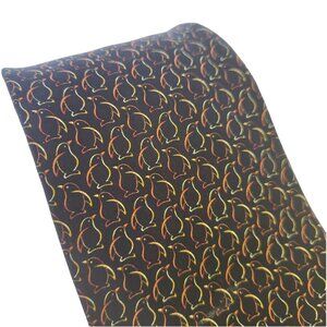 Salvatore Ferragamo Penguin print black multicolor silk necktie.