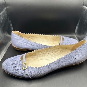 Chic periwinkle flats with scalloped edges. Features delicate perforated design. Ideal for stylish comfort. Used condition, there is some scuffing on the front of the shoes, please see pics. These are periwinkle in color.
