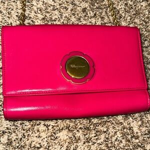 Salvatore Ferragamo Pink Crossbody Bag with Gold Chain