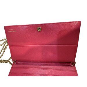 Salvatore Ferragamo Pink Leather Chain Strap Clutch With Gold Bow Detail