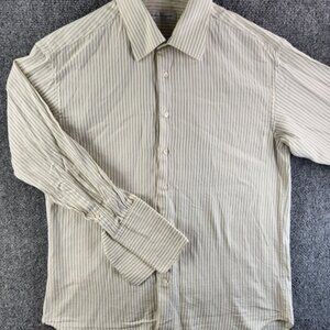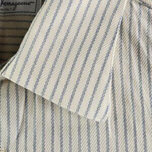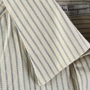 Salvatore Ferragamo R 16.5 Italy Made Ivory Blue Striped Long Sleeve Button Up