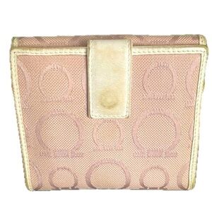 Salvatore Ferragamo Rare Pink Canvas, White Leather Pre Loved Vintage Bi-Fold