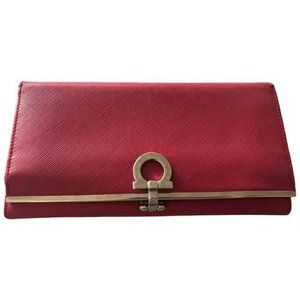 Salvatore Ferragamo Red Black Long Gancini Wallet