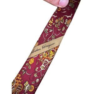 Salvatore Ferragamo Red Fall Harvest Print Handmade Neck Tie