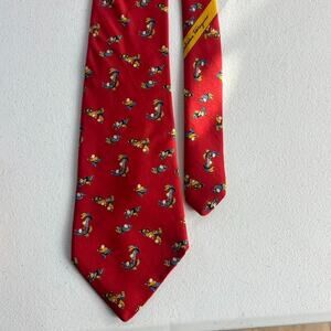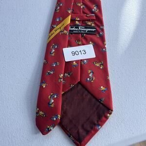 Salvatore Ferragamo Red Silk Necktie 58" Red Art Motif Made In Italy