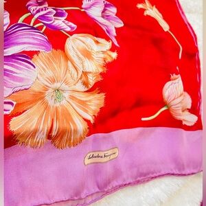 Salvatore Ferragamo Red and Pink Silk Scarf