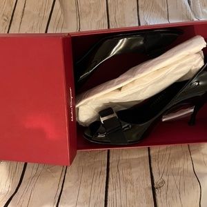 Salvatore Ferragamo Ribes 70 Vara Bow Black Patent Shoes Heels Pumps 7.5 AA