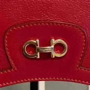 Salvatore Ferragamo Rory sofiano shouldre bag in deep red color.
