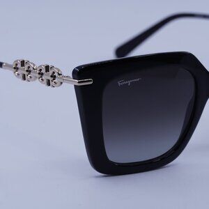 Authentic Salvatore Ferragamo SF1041S 001 sunglasses in black frame with ruthenium elements at the temples.