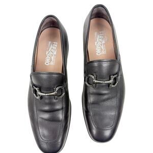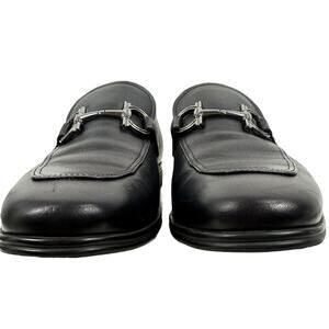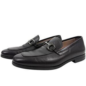 Salvatore Ferragamo Scarlet Gancini Double Bit Loafers Black Leather Size 8.5