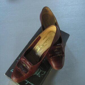 VTG Salvatore FERRAGAMO Burgundy Loather Shoes 2” Heel, Closed Toe Pumps with tassle women's shoes US 9.5 B Italy. Gently worn. Pre owned - Shoes are in nice condition. Bottoms show evidence of wear. See pictures; being sold as is.