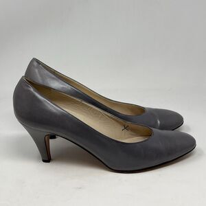 Salvatore Ferragamo Shoes Womens 10 AAA Narrow Gray Leather Pumps Made in Italy
