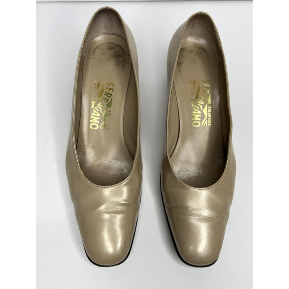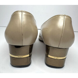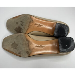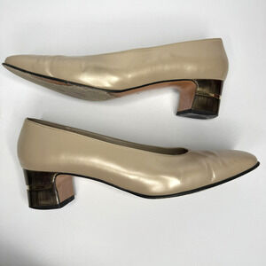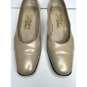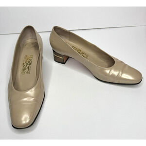 Salvatore Ferragamo Shoes Womens Size 8.5 Beige Leather Block Heel Pumps Italy