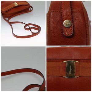 Salvatore Ferragamo Shoulder Bag Leather Brown Gold Auth 102665
