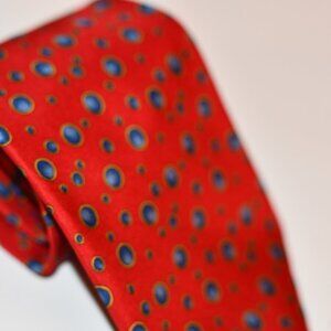 Salvatore Ferragamo Silk Tie – Red with Blue & Yellow Dot Pattern